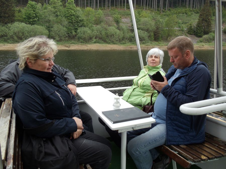 Bei einer gemütlichen Schifffahrt sahen wir die Okertalsperre und die Staumauern. Es gab Kaffee, Kuchen und herrlichen Sonnenschein gratis.