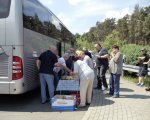 Mit an Bord, Busfahrer Thomas mit Begleitung und natürlich " Oma". Bei einen Zwischenstop gab es wieder ein leckeres Frühstück.