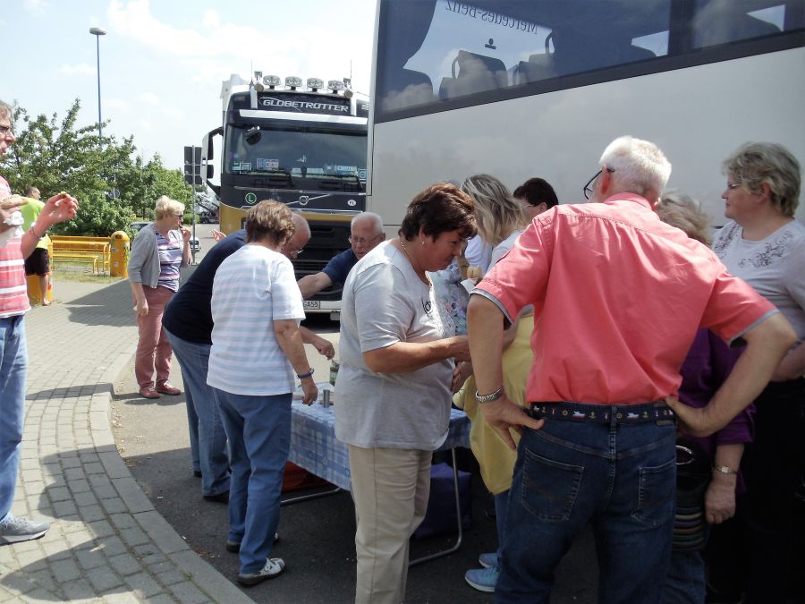 Mit an Bord, Busfahrer Thomas mit Begleitung und natürlich " Oma". Bei einen Zwischenstop gab es wieder ein leckeres Frühstück.