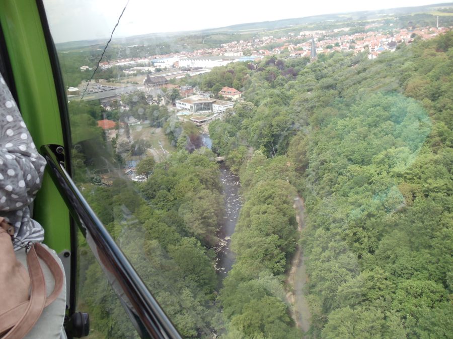 Mit der Schwebebahn ging es dann auch gleich hoch zum Hexentanzplatz. Wir erfreuten uns an der schönen Aussicht während der Fahrt.